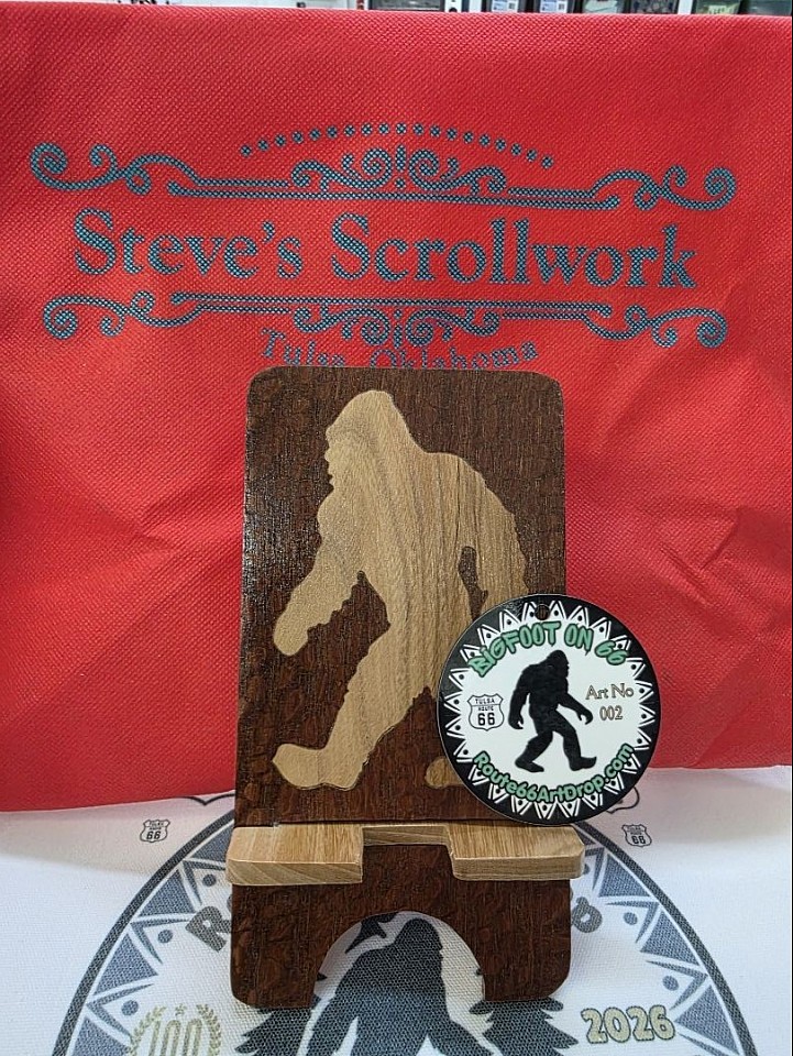 Starting May 28th Bigfoot Art Drop tokens will be hidden along Route66 from Catoosa Blue Whale to Crystal City Shopping Center in Historic Red Fork District. All collected tokens can be redeemed during the Bigfoot on 66 Festival held May 31st, 2026 Noon to 6pm